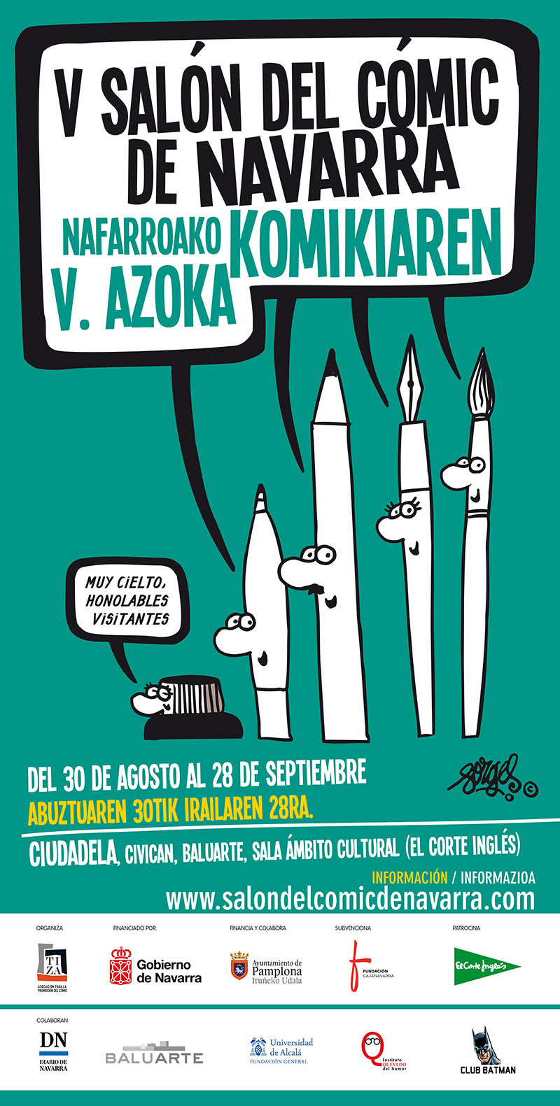 Del 30 de Agosto al 28 de Septiembre tendrá lugar el V Salón del Cómic de Navarra con numerosas exposiciones, talleres, encuentros con autores, películas y diversas actividades repartidas entre el Civican, Baluarte, Ciudadela y Sala Ámbito Cultural del Corte Inglés.