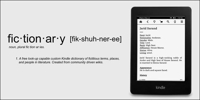 Fictionary es una aplicación que permite crear y descargar en tu dispositivo Kindle o app Kindle diccionarios de personajes de libros.