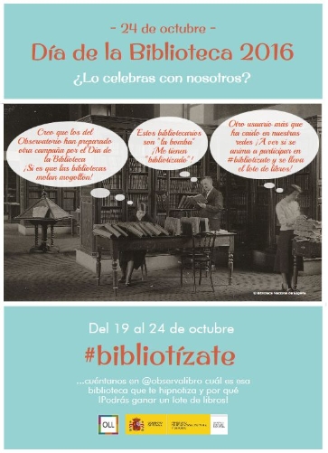 Con motivo del Día de la Biblioteca, que se celebra el 24 de octubre, el Observatorio pone en marcha #bibliotízate, una iniciativa con la que se quiere rendir tributo a estas instituciones culturales invitando a los usuarios a contar vía Twitter cuál es esa biblioteca que les tiene hipnotizados
