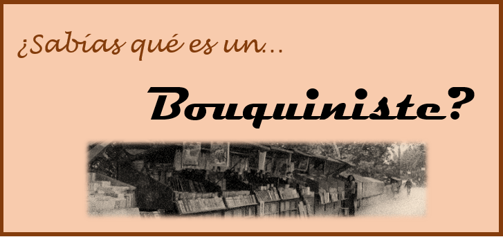 La palabra buquinista o bouquiniste en francés, se refiere a los libreros (o vendedores de libros) que venden los libros antiguosy de ocasión, la palabra deriva de bouqin, pequeño libro, es decir, libros de edición bolsillo, con un tamaño menor que lo usual.