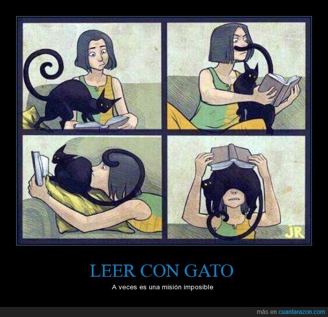 Porque no hay nada cómo leer acompañado de un «lindo gatito», os compartimos estas simpáticas viñetas, además os recomendamos leer alguna de las recomendaciones que os hemos estado haciendo hoy en nuestro Twitter.