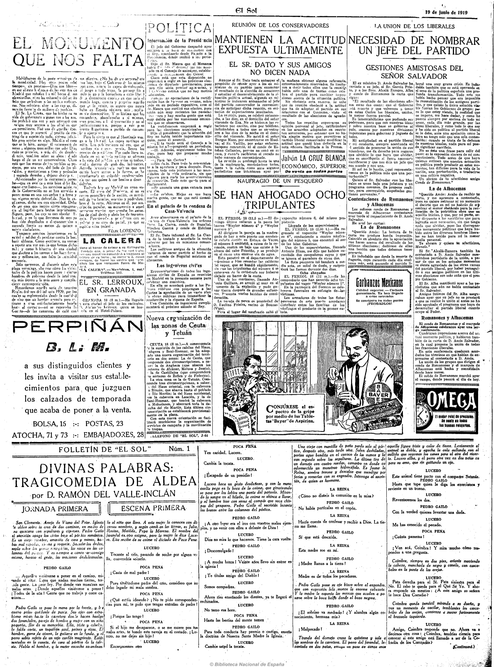 Os dejamos una imagen del 19 de junio de 1919 con los primeros versos de la obra teatral en el periódico El Sol.