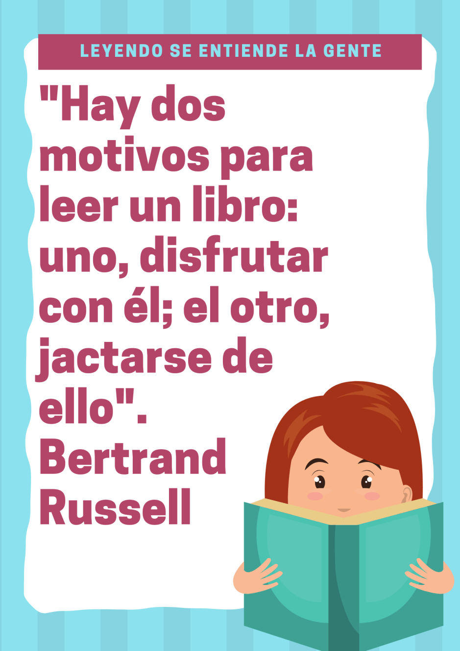 LESEG 01/08/2019 Noticias literarias Agosto 2019. Bertrand Russell . «There are two motives for reading a book; one, that you enjoy it; the other, that you can boast about it». Compártelo Haz clic para imprimir (Se abre en una ventana nueva) Imprimir Más Haz clic para compartir en X (Se abre en una ventana nueva) X Haz clic para compartir en Facebook (Se abre en una ventana nueva) Facebook Haz clic para compartir en WhatsApp (Se abre en una ventana nueva) WhatsApp Haz clic para enviar un enlace por correo electrónico a un amigo (Se abre en una ventana nueva) Correo electrónico Me gusta Cargando... Relacionado