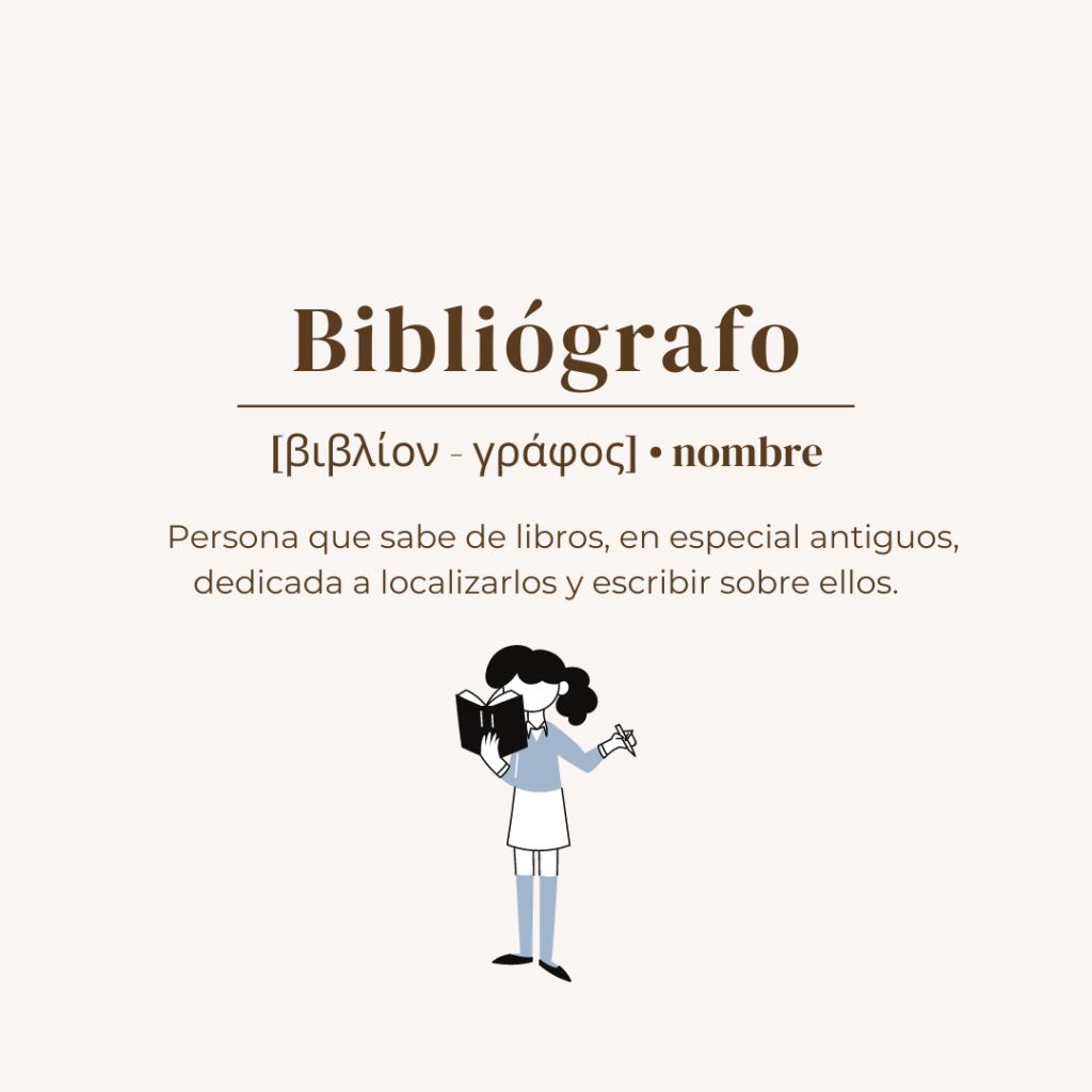 La palabra que nos toca en el Biblioccinario de hoy es Bibliógrafo, según la RAE se dice de la persona que sabe de libros, en especial antiguos, dedicada a localizarlos y escribir sobre ellos. Un especialista en la bibliografía.