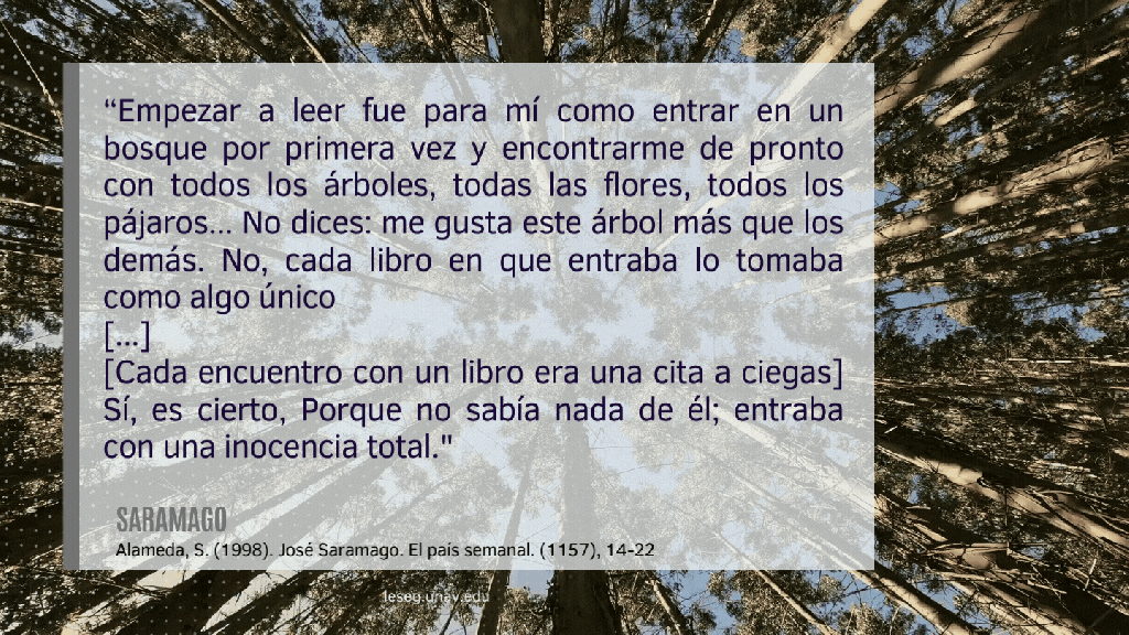 “Empezar a leer fue para mí como entrar en un bosque por primera vez y encontrarme de pronto con todos los árboles, todas las flores, todos los pájaros… No dices: me gusta este árbol más que los demás. No, cada libro en que entraba lo tomaba como algo único,