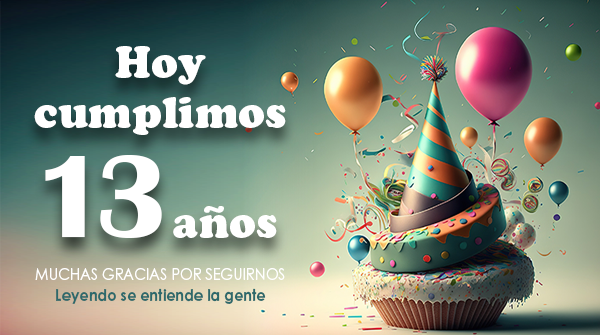 Este blog entra en la adolescencia. Hoy cumplimos 13 años, edad en la que algunos progenitores echan a temblar. Vosotros podéis estar tranquilos, auguramos una pubertad asumible.