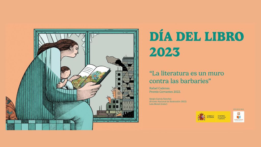 El cartel del Día del Libro de este año ha sido confeccionado por Sergio García Sánchez (Premio Nacional de Ilustración 2022) y Lola Moral inspirados en la cita del Premio Cervantes 2022 Rafael Cadenas.