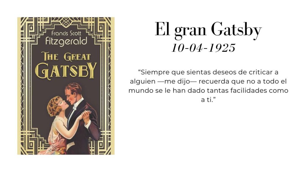 Hoy, 10 de abril de 2025, se cumplen 100 años de la publicación de El gran Gatsby, la célebre novela de F. Scott Fitzgerald, considerada un clásico de la ficción estadounidense.