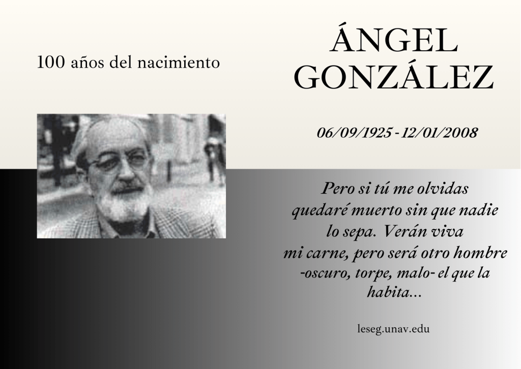Ángel González (Oviedo, 1925 – Madrid, 2008) es una de las figuras más destacadas de la poesía española de la segunda mitad del siglo XX. Su obra, enmarcada dentro de la llamada poesía de la experiencia, se caracteriza por un lenguaje claro, un tono coloquial y una profunda carga ética y emocional, donde confluyen el compromiso cívico, la ironía y una reflexión constante sobre el tiempo y el amor.