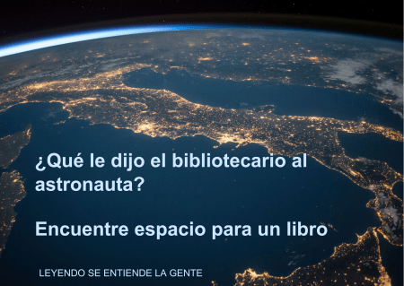 ¿Qué le dijo el bibliotecario al astronauta? Encuentre espacio para un libro. … un poquito de humor.